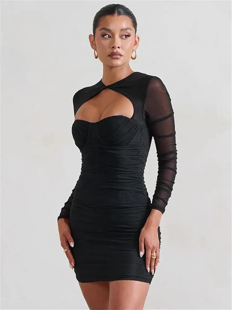 🖤 Bold. Sultry. Unforgettable. 🖤This mesh sleeve cutout bodycon brings that perfect mix of sophistication and sass. Your new go-to for night-outs & cocktail vibes 🍸