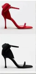 Bold scarlet stiletto heels with a sleek strap design and a sculpted bow at the back for a chic, feminine finish.