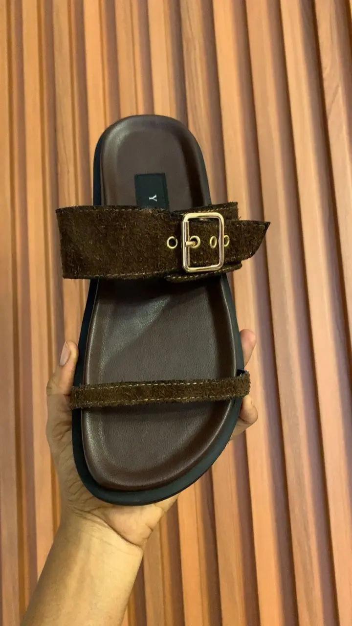 Elevate your casual style with these deep brown suede buckle sandals. The adjustable strap with a metallic buckle provides a secure fit, while the cushioned sole keeps you comfortable throughout the day. Perfect for pairing with both traditional and modern outfits.