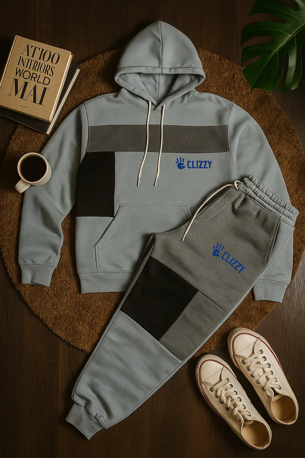 Elevate your athleisure game with the CUZZY Color-Block Tracksuit – a bold fusion of comfort and style. Designed for the modern go-getter, this two-piece set features a premium soft-knit hoodie and matching joggers, crafted from a breathable cotton-poly blend that moves with you. The unique color-block design blends cool gray tones with deep navy accents, creating a sleek, street-ready aesthetic.